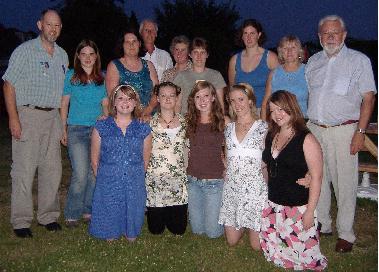 Back row: Host families Lion Derek Livsey with Rebecca and Lynne, Lion Jim Dowling with