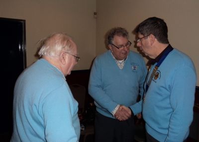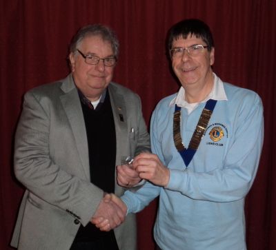 Long Service Awards: 1st Vice District Governor, Keith Wilding, visited the Radstock and Midsomer Norton Lions Club at the last business meeting, 1st Tuesday in December. He congratulated the club on its achievements during the past year, including the Duck race, Carol Float, the Great Christmas Draw, Last Night of the Proms Concert, Ebola orphans, Medic Alert, Water Purification Tanks, used specs and Easter Eggs. Long service awards were presented to Lions Tony Hill & Barry Rogers, both stalwarts of the club.