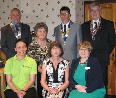 Photo: Lions Russell, Trish, President Margaret, Tony, Richard and Trevor and Nigel Crutchley in the front with our £250 donation.
