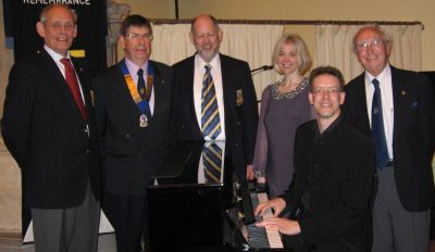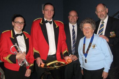 Photo: Natalia Miles, John Derrick (band sololists), Musical Director Steve Rogers, Lion President Margaret Small and organiser Lion Derek Livsey.