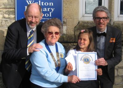 The winner, spotting 28 of the 30 lions placed, was Alexis from Welton Primary, winning a £25 book token, shown below with organiser, Lion Derek Livsey, President, Lion Margaret Small and Head Teacher, John Snell.